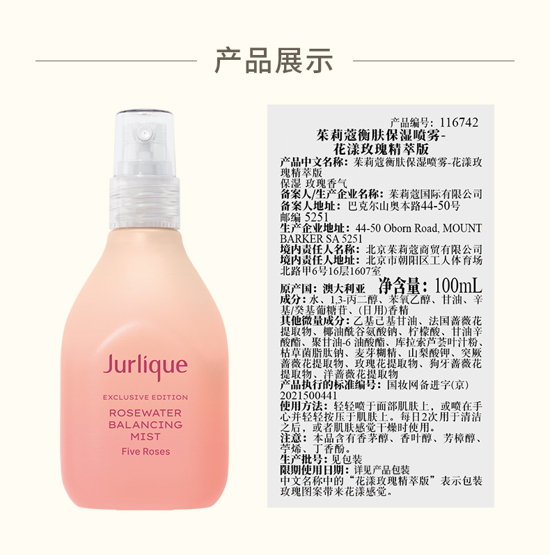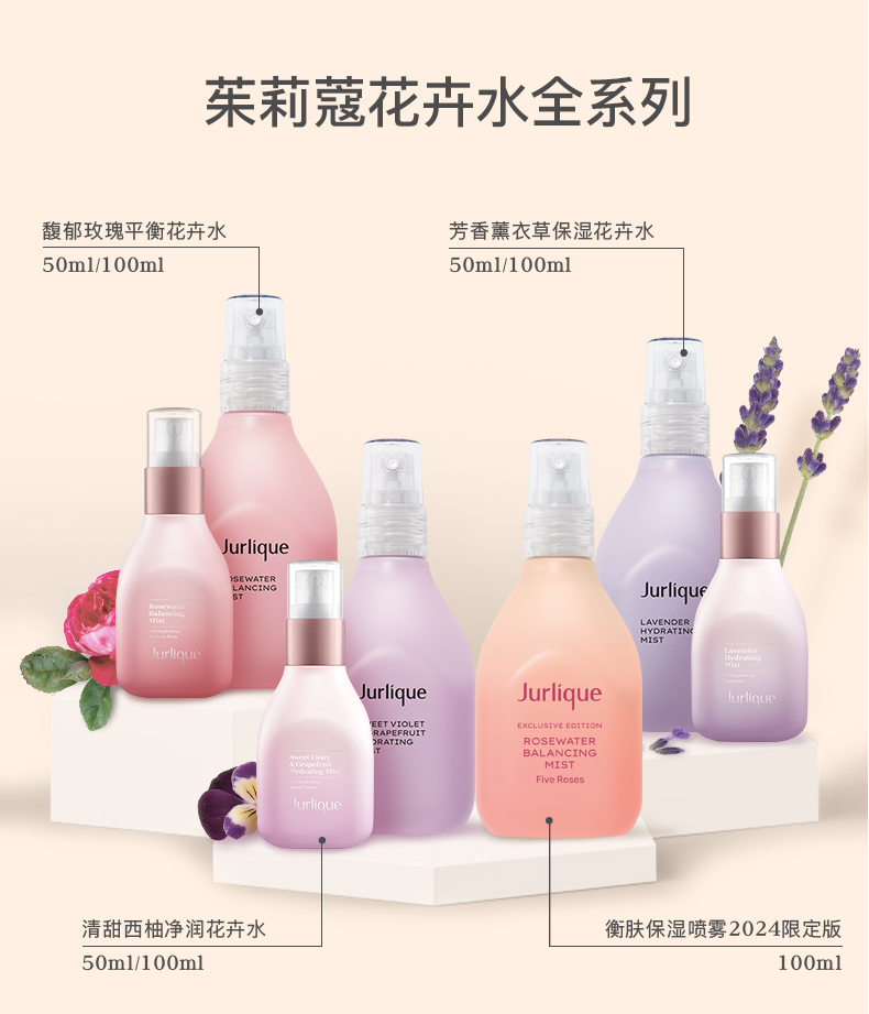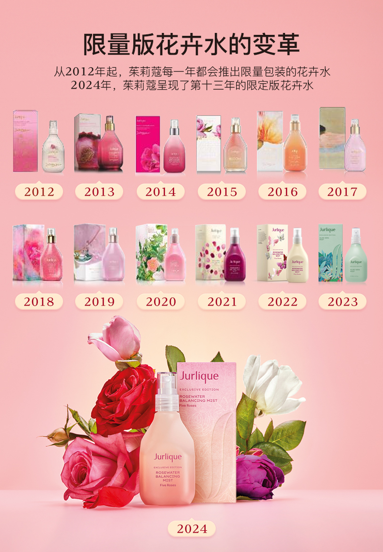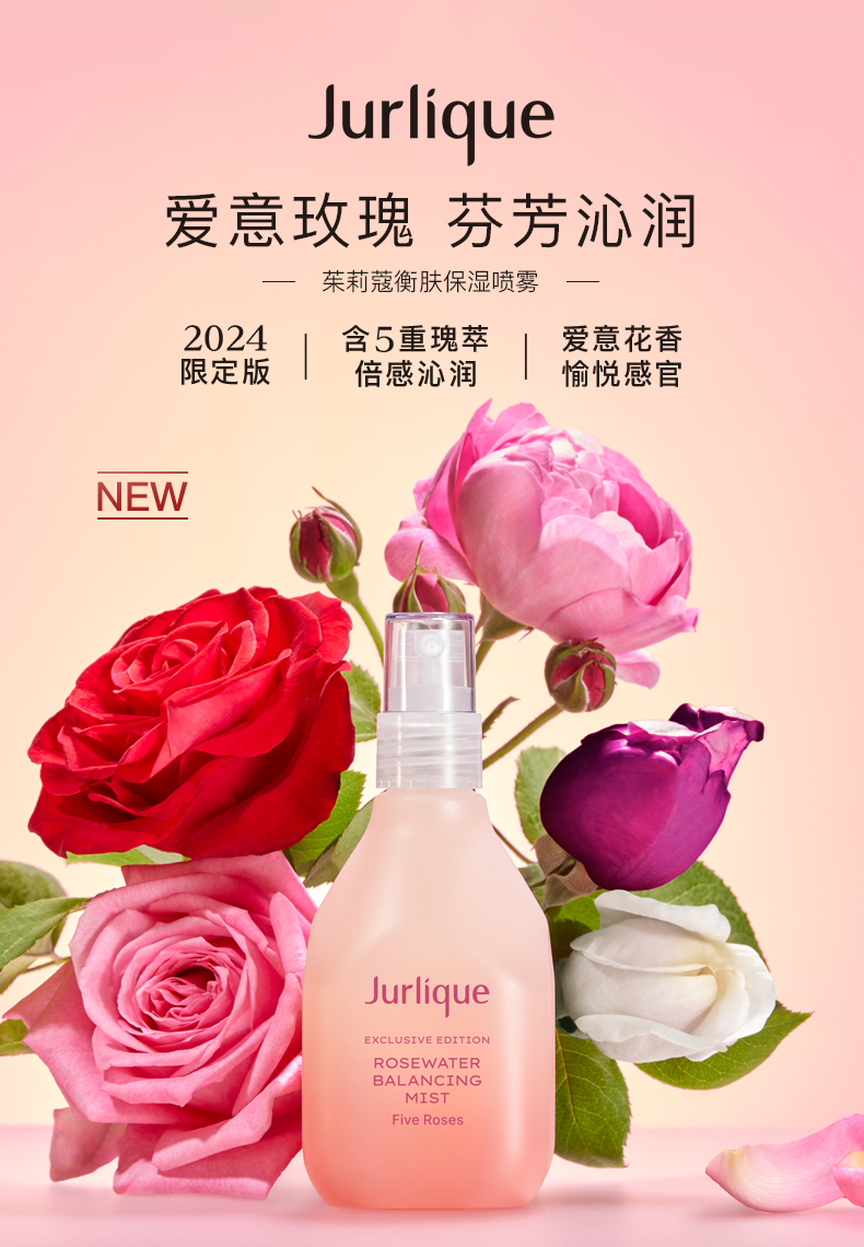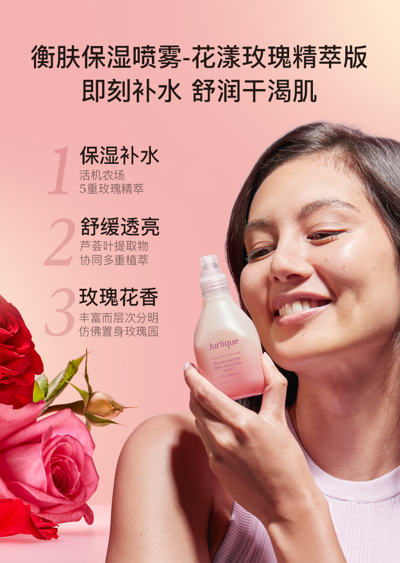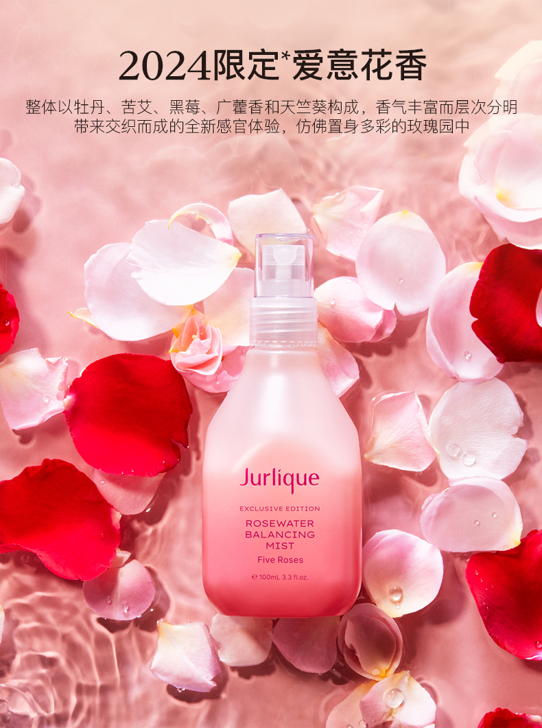 蕴含茱莉蔻农场5种玫瑰提取物 用纯粹玫瑰花香焕然感官清新 拥有调理、平衡及软化肌肤的功效
