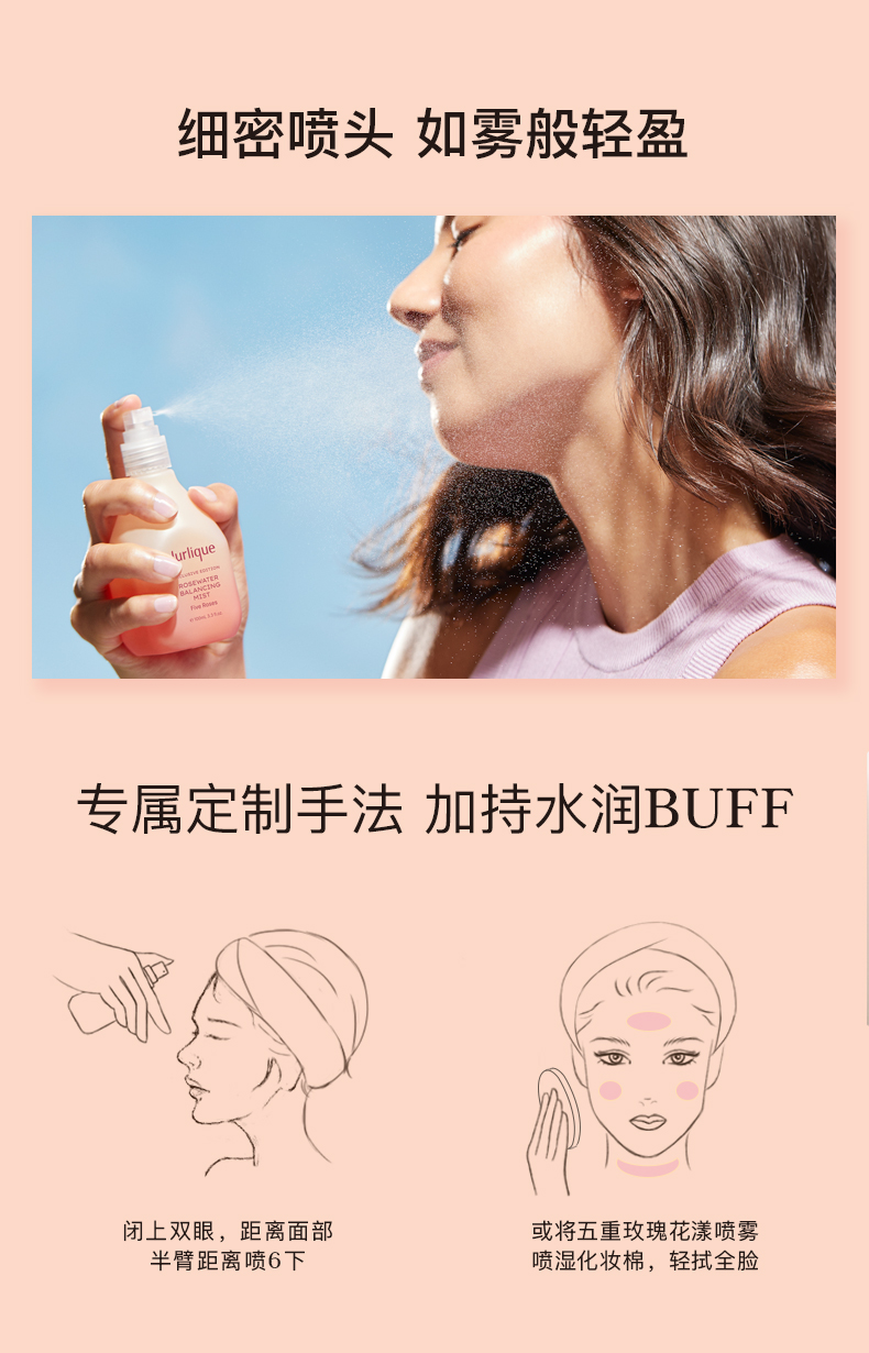 洁面后,喷洒于面部、颈部,可轻轻按压至吸收