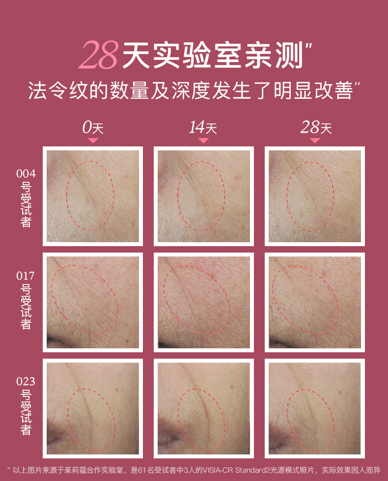 塑颜紧实,抚纹平滑。经28天使用后: