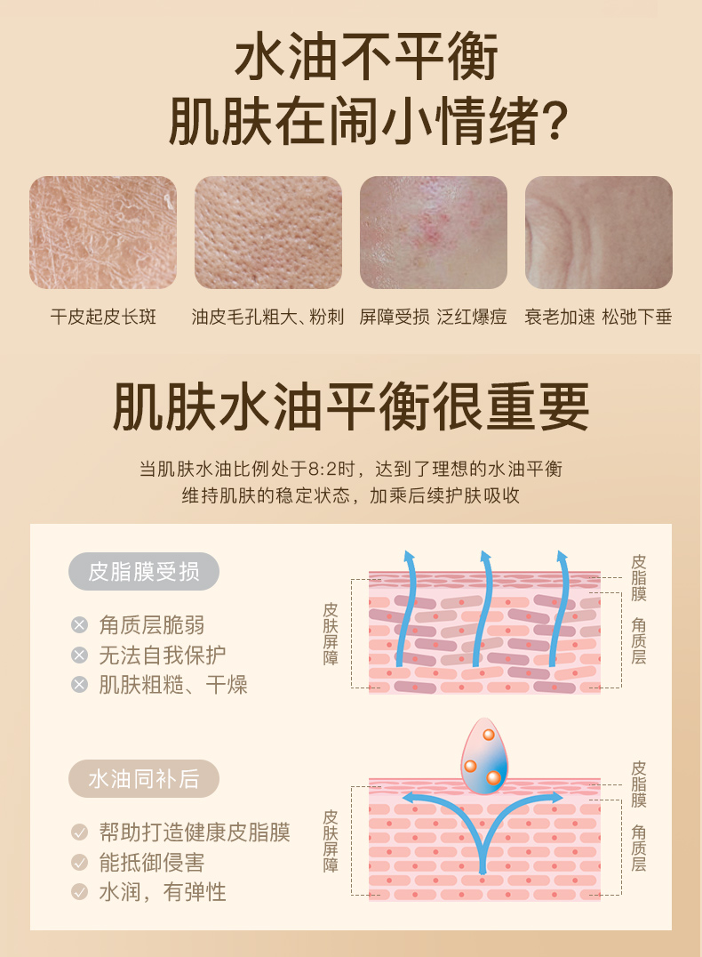 搭配护理:与元气精华水以2:8的比例混合使用,水油同补。