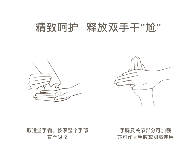 平衡,保湿,软化手部肌肤,给手部肌肤滋润同时带来良好保护,强健甲缘