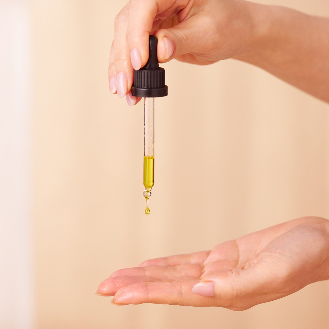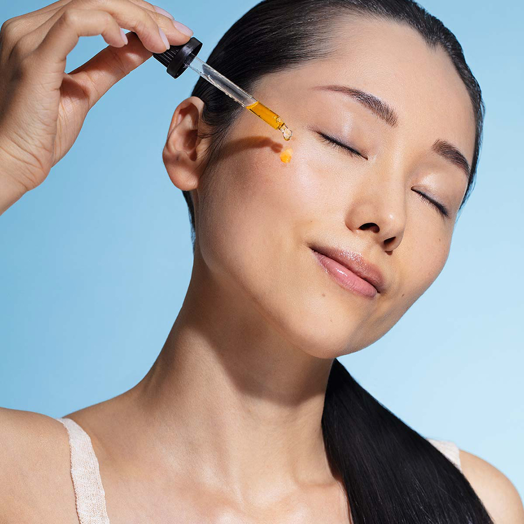 面部日常使用:精华后面霜前取2滴于手心回暖预热后按压于湿润的肌肤上。