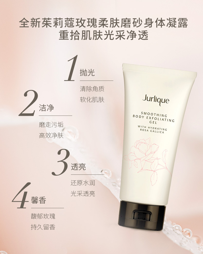 将天然“微珠”融入独特凝露质地 搭配奢华草本配方 于去角质同时滋润强韧肌肤 经典玫瑰香气更唤活感官 令一年初始的身、心、肌美如初见