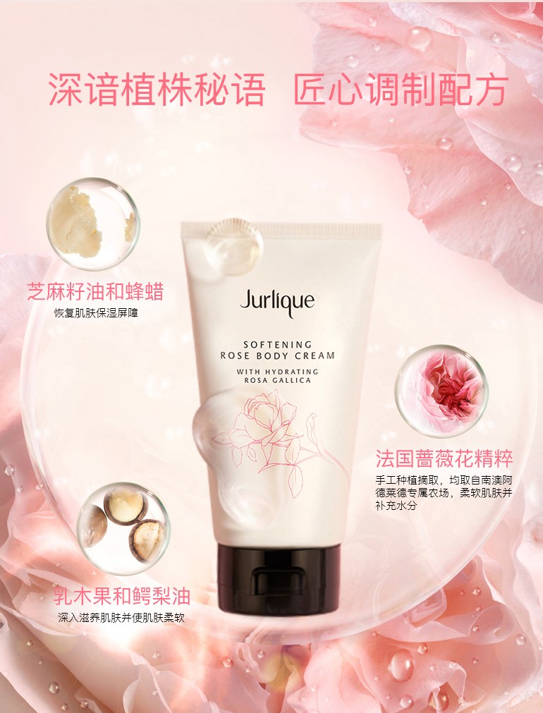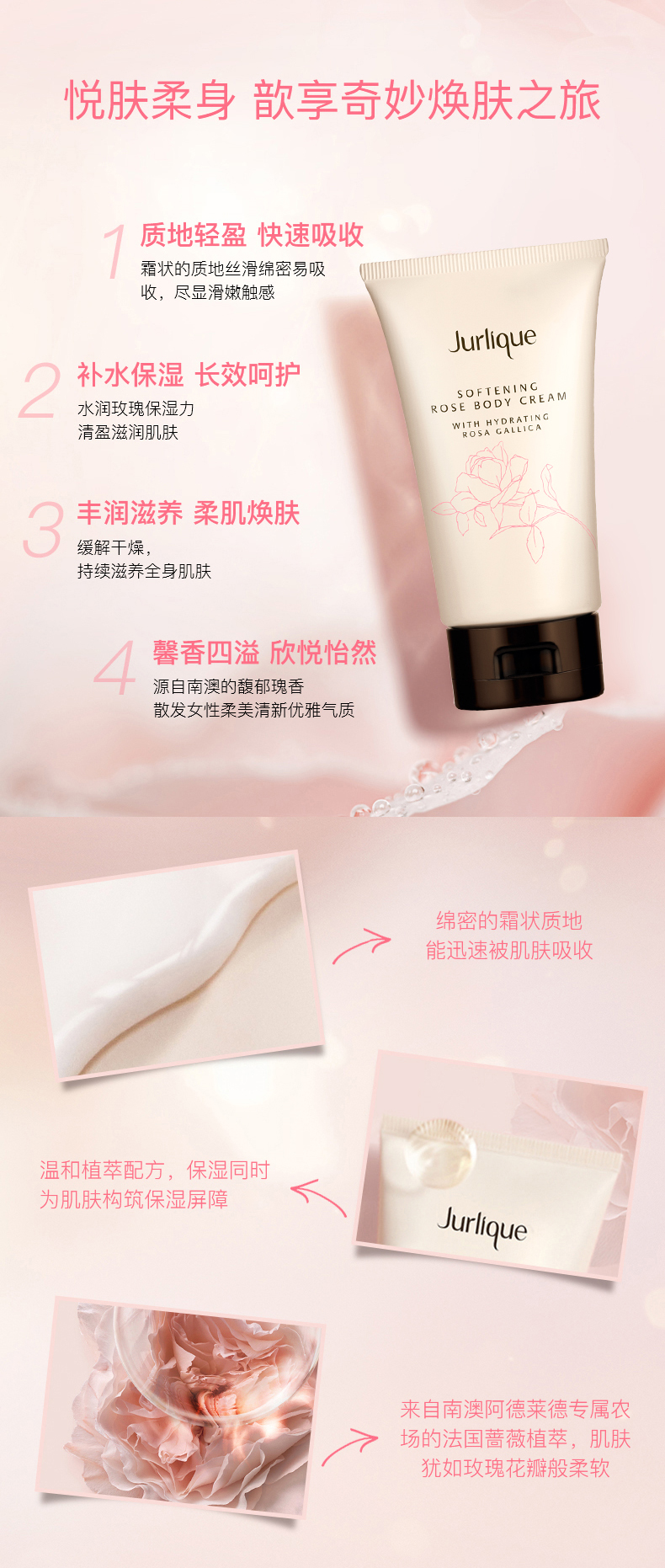 这款丰润的身体霜能被肌肤快速吸收 深层法养使几肤焕发透亮的光泽 散发迷人的芳香